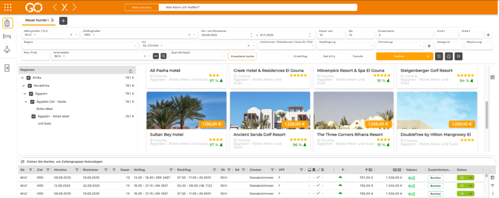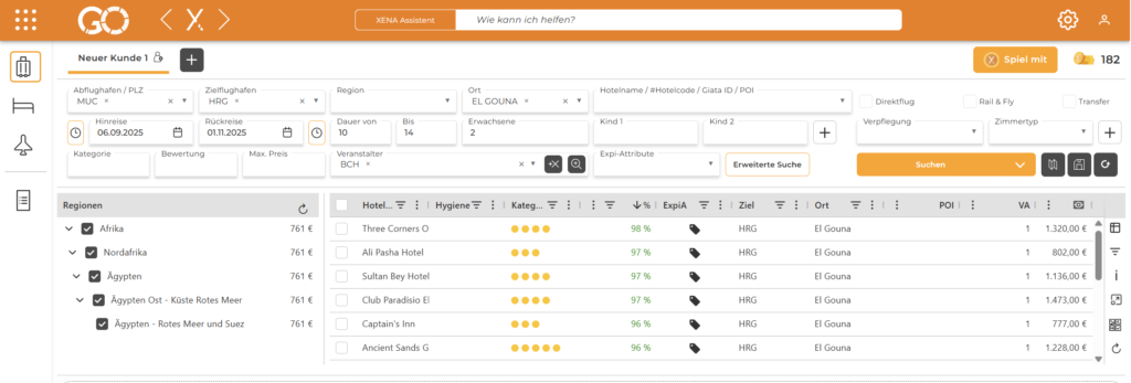 Nutzen Sie das Feature XENA Assistent, um schnell Alternativen für Reisen oder Informationen zu Zielgebieten zu erhalten – einfach eintippen und direkt Antwort erhalten!